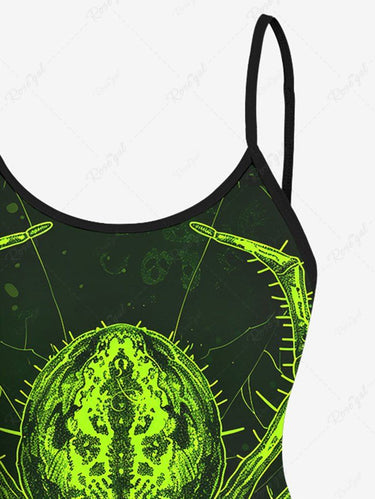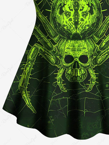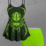 Gothic Plus Size Glitter Skull Spider Print Boyleg Tankini Swimsuit (Adjustable Shoulder Strap)