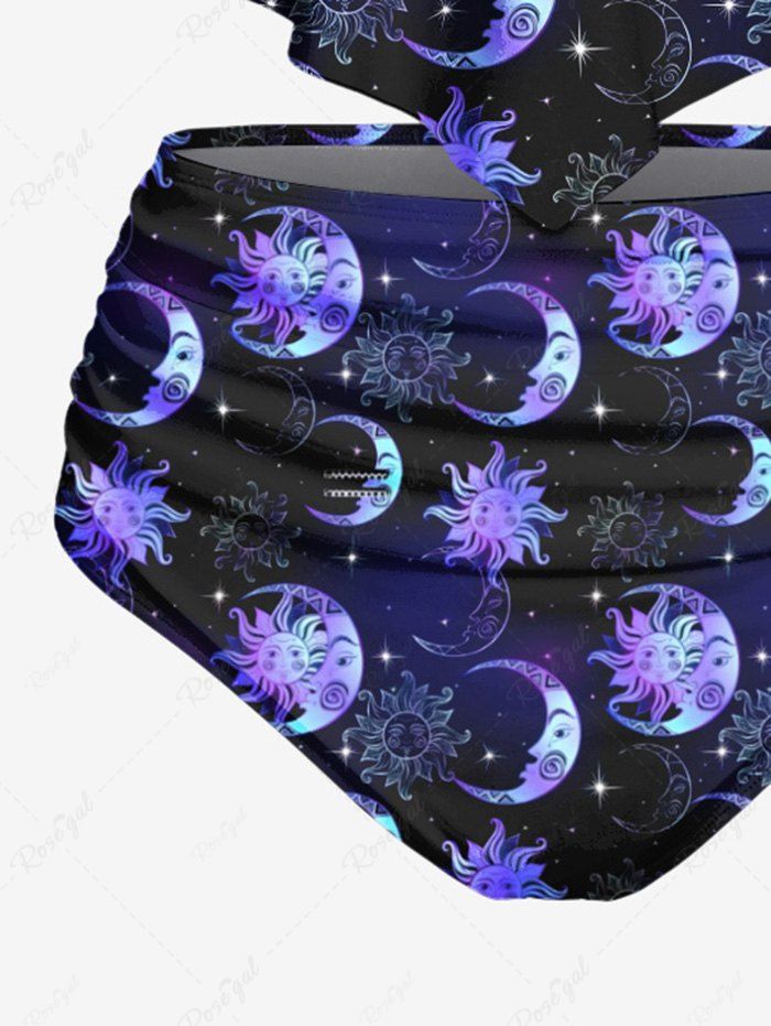 Gothic Plus Size Sun Moon Star Ombre Galaxy Print Peplum Hem Tankini Swimsuit (Adjustable Shoulder Strap)