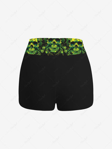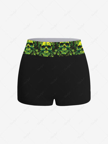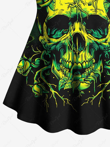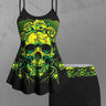 Gothic Plus Size Skull Branch Rose Flower Print Boyleg Tankini Swimsuit (Adjustable Shoulder Strap)