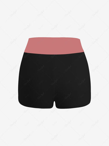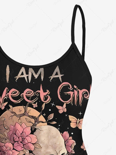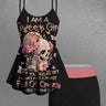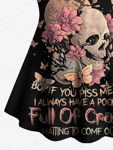 Gothic Plus Size Skull Floral Butterfly Moon Letters Print Boyleg Tankini Swimsuit (Adjustable Shoulder Strap)