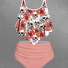 Gothic Plus Size Skull Floral Print Peplum Hem Backless Tankini Swimsuit (Adjustable Shoulder Strap)