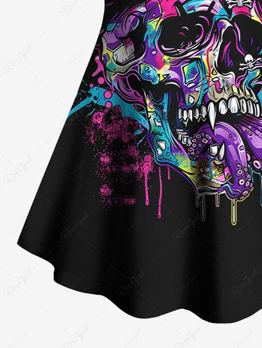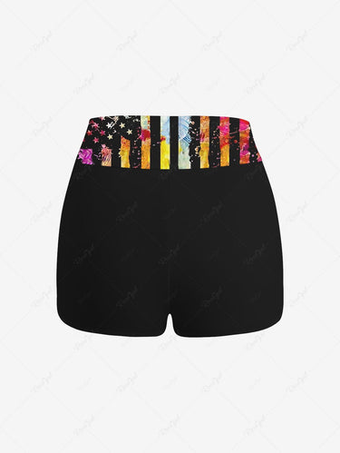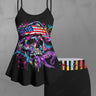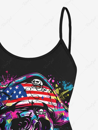 Gothic Plus Size Skull Octopus Patriotic American Flag Painting Splatter Print Boyleg Tankini Swimsuit (Adjustable Shoulder Strap)