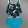 Gothic Skull Shell Jewelry Print Peplum Hem Tankini Swimsuit