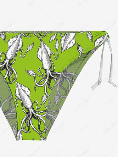 Gothic Squid Print Hawaii Plunging Halter Backless Bikini Set