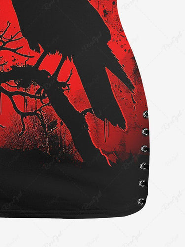 Gothic Plus Size Ink Painting Tree Branch Eagle Moon Print Ombre Racerback Tank Top