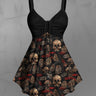 Gothic Plus Size Skulls Pine Print Cinched Backless Tank Top