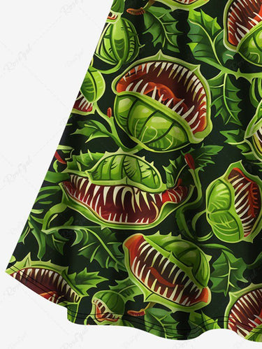 Gothic Plus Size Piranha Plant Print Crisscross A Line Cami Dress