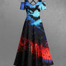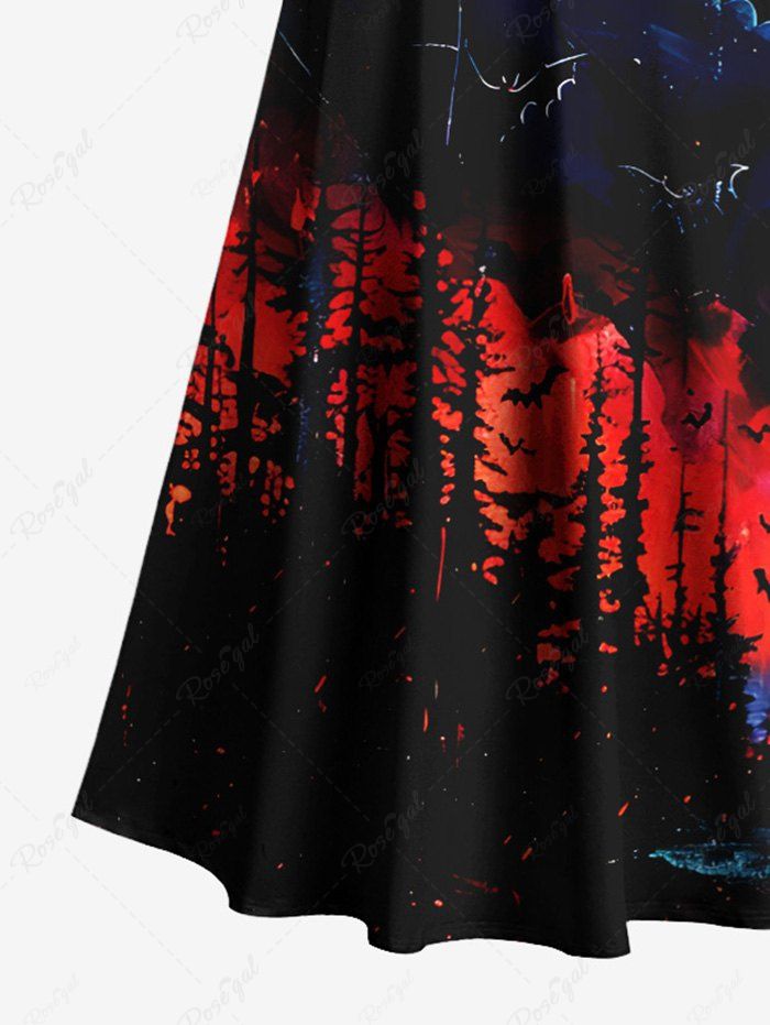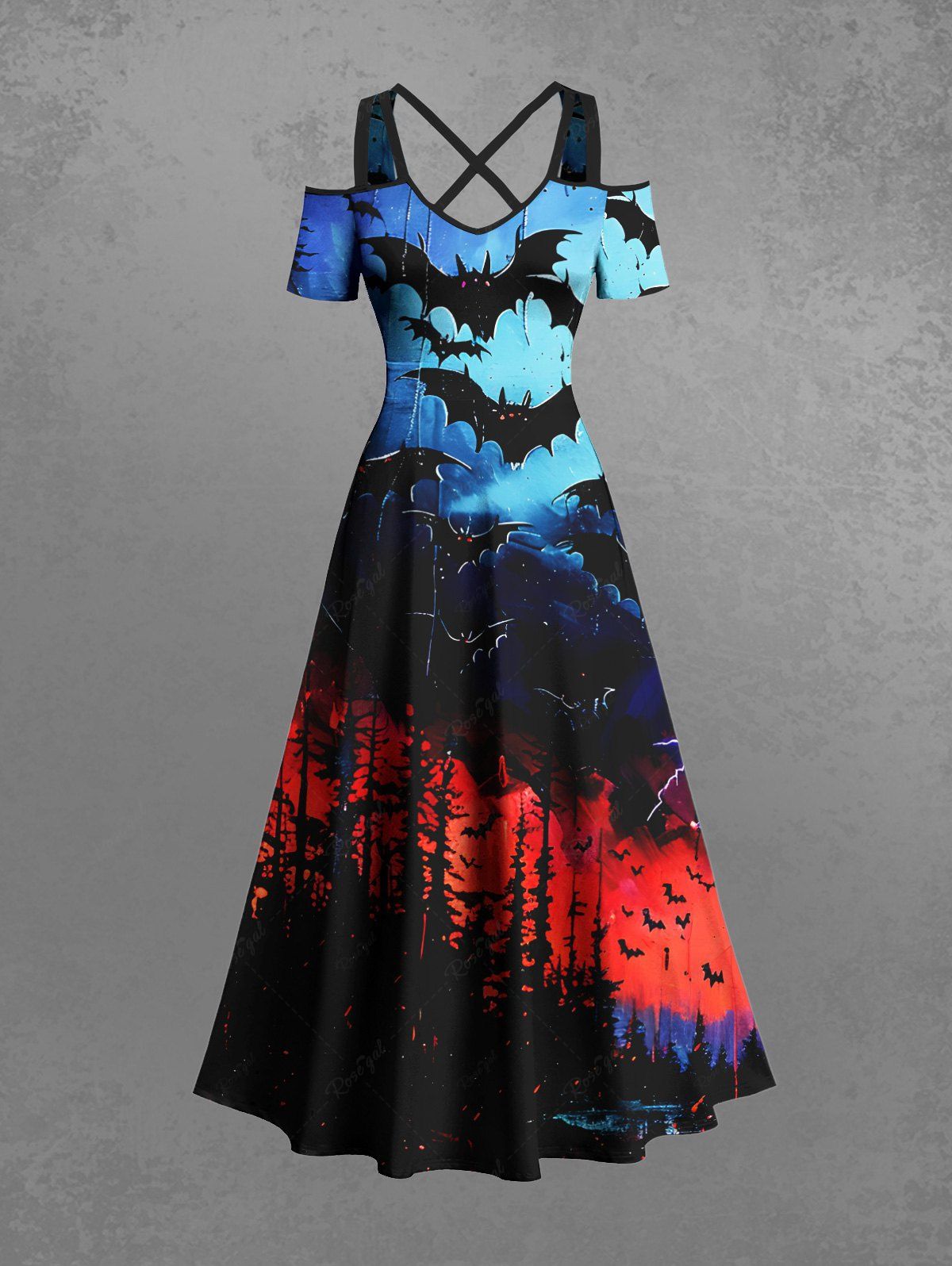 Gothic Plus Size Bat Forest Lightning Ombre Galaxy Print Halloween Cold Shoulder Crisscross A Line Maxi Dress