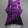 Gothic Plus Size Bat Ombre Paint Splatter Print Ruched Flare Sleeves High Low Dress