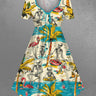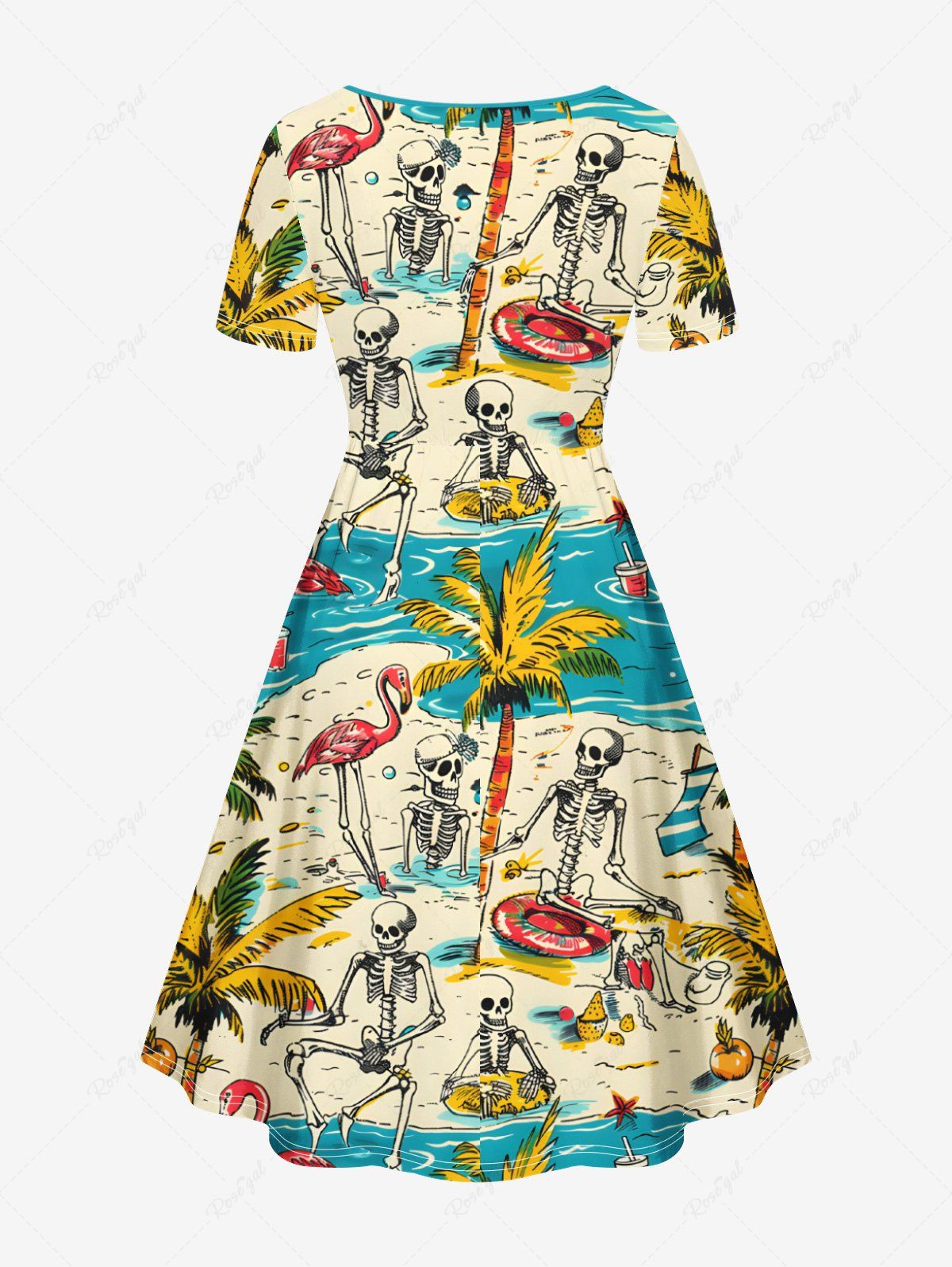 Gothic Plus Size Coconut Tree Flamingo Skeleton Sea Beach Print Hawaii Cinched A Line Dress