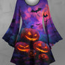 Gothic Plus Size Halloween Pumpkin Lantern Bat Cloud Print Flare Sleeves Dress