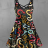 Gothic Plus Size Snake Floral Leaves Print Halloween Costume Crisscross A Line Cami Dress