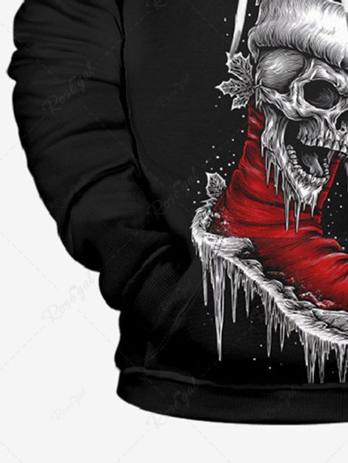 Gothic Plus Size Christmas Hat Boots Skull Print Pullover Long Sleeves Hoodie For Men