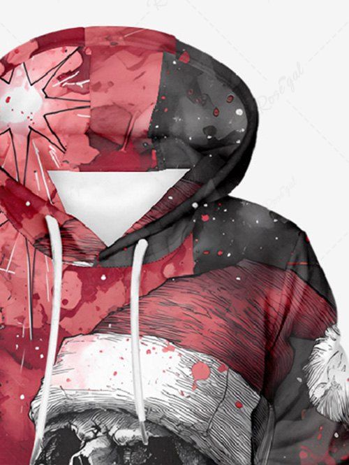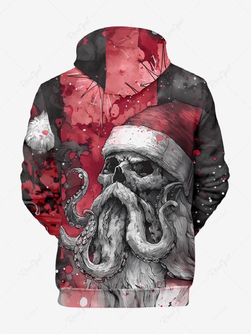 Gothic Plus Size Christmas Hat Skull Octopus Print Pocket Drawstring Pullover Long Sleeves Hoodie For Men