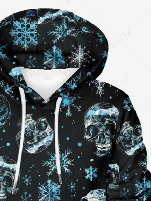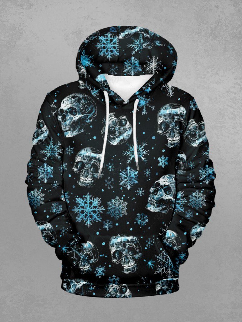 Gothic Plus Size Christmas Snowflake Skull Print Pullover Long Sleeves Hoodie For Men