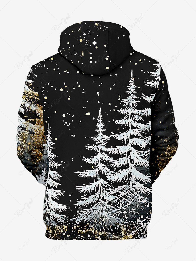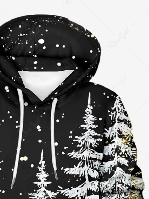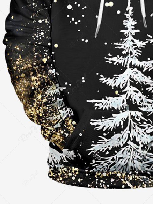 Gothic Plus Size Christmas Tree Snowflake Print Pocket Drawstring Pullover Long Sleeves Hoodie For Men