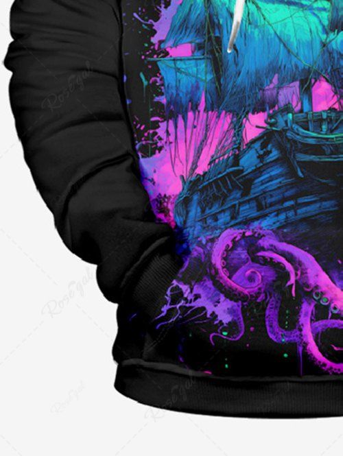 Gothic Plus Size Octopus Ship Paint Splatter Print Drawstring Pockets Hoodie For Men