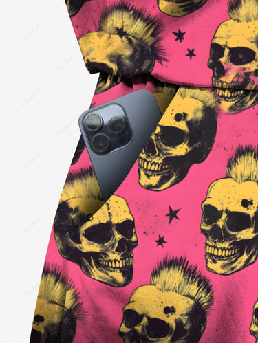 Gothic Plus Size Rock Skull Stars Print Drawstring Pocket Romper