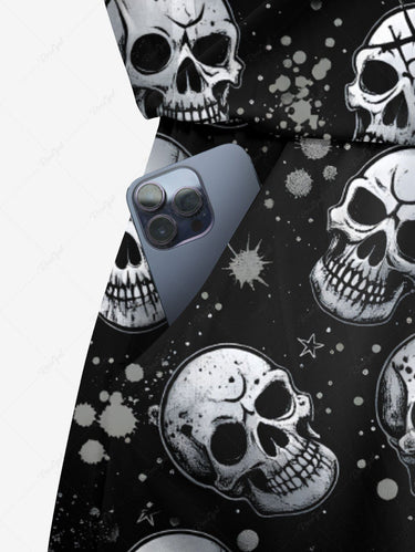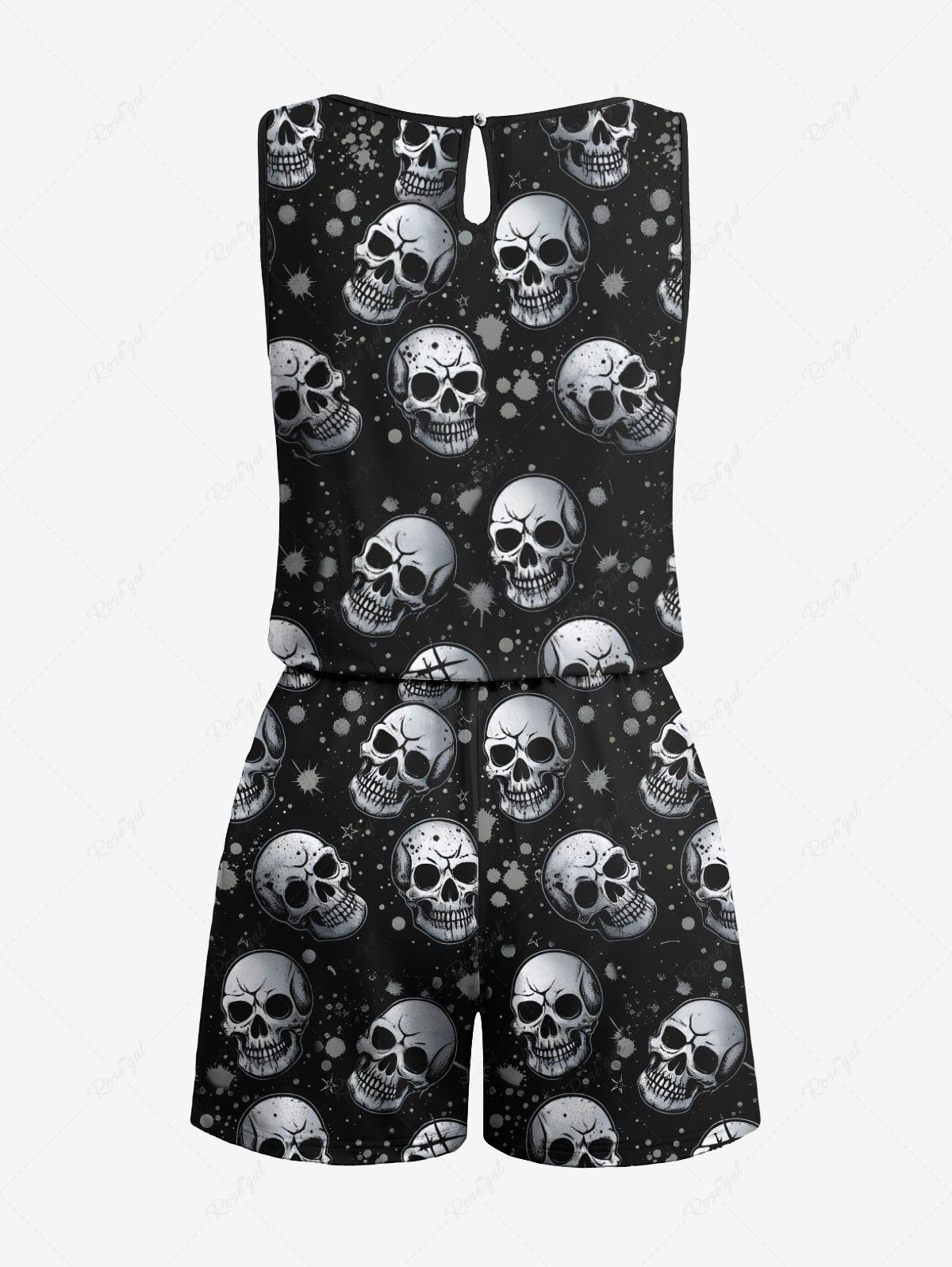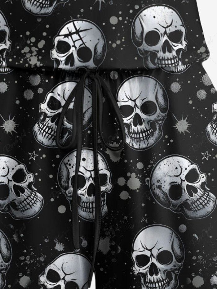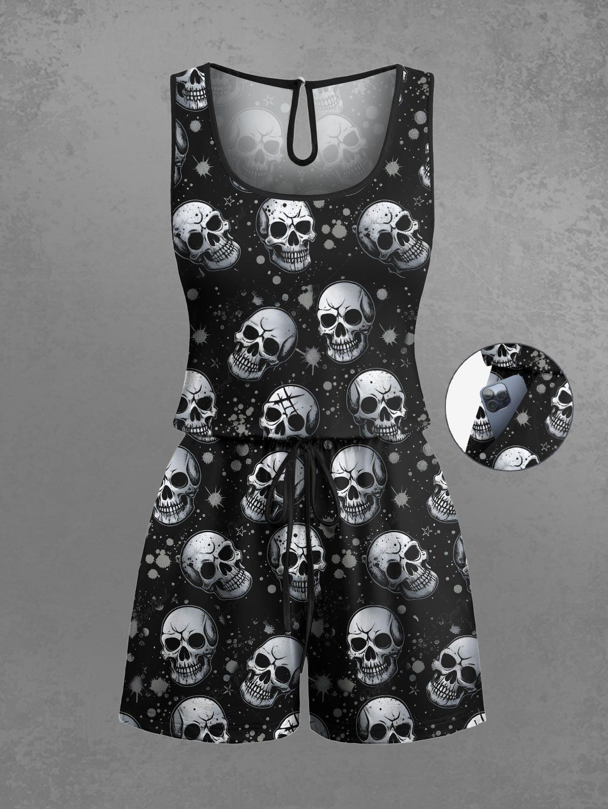 Gothic Plus Size Skull Painting Splatter Print Drawstring Pocket Romper