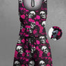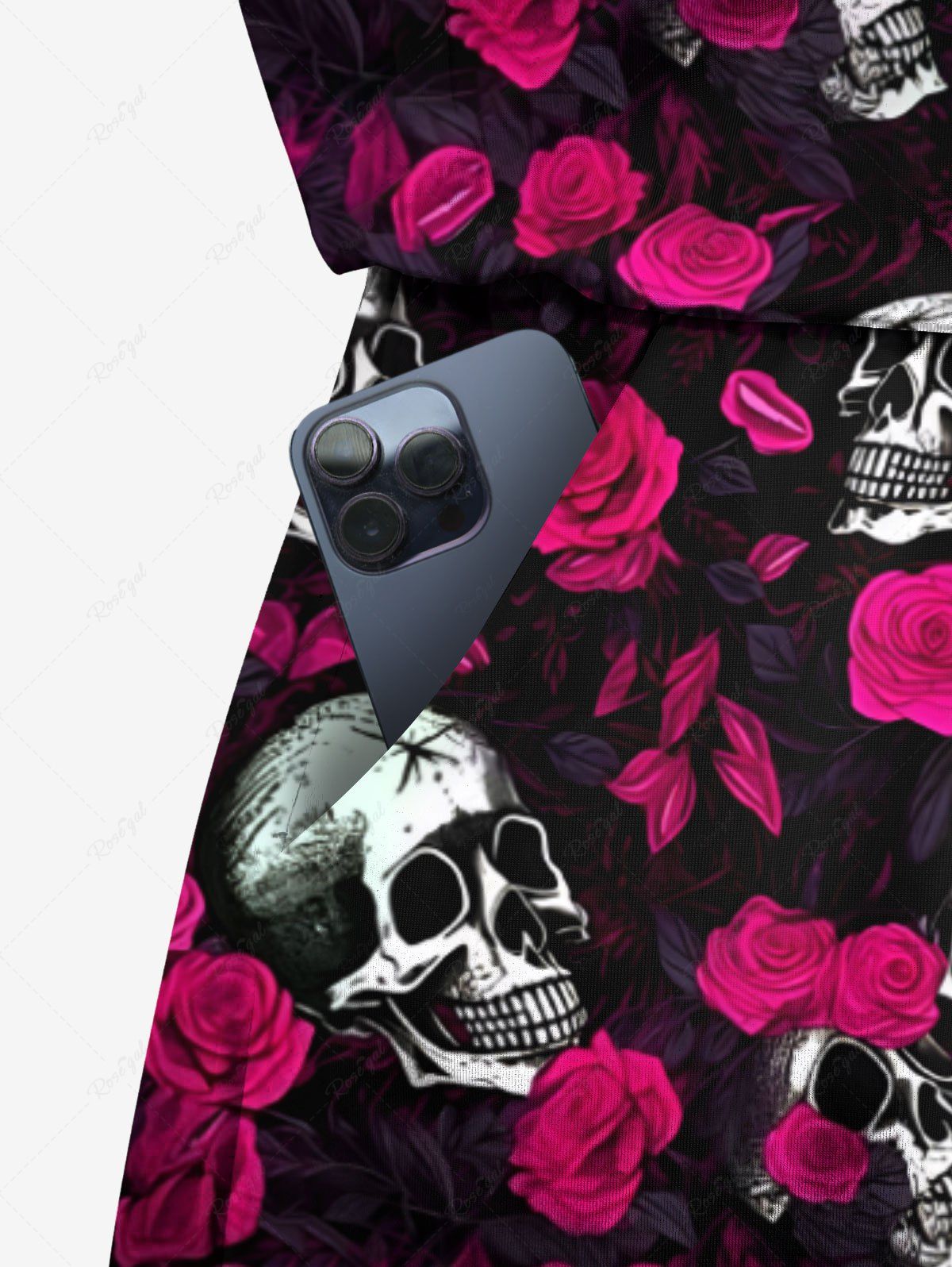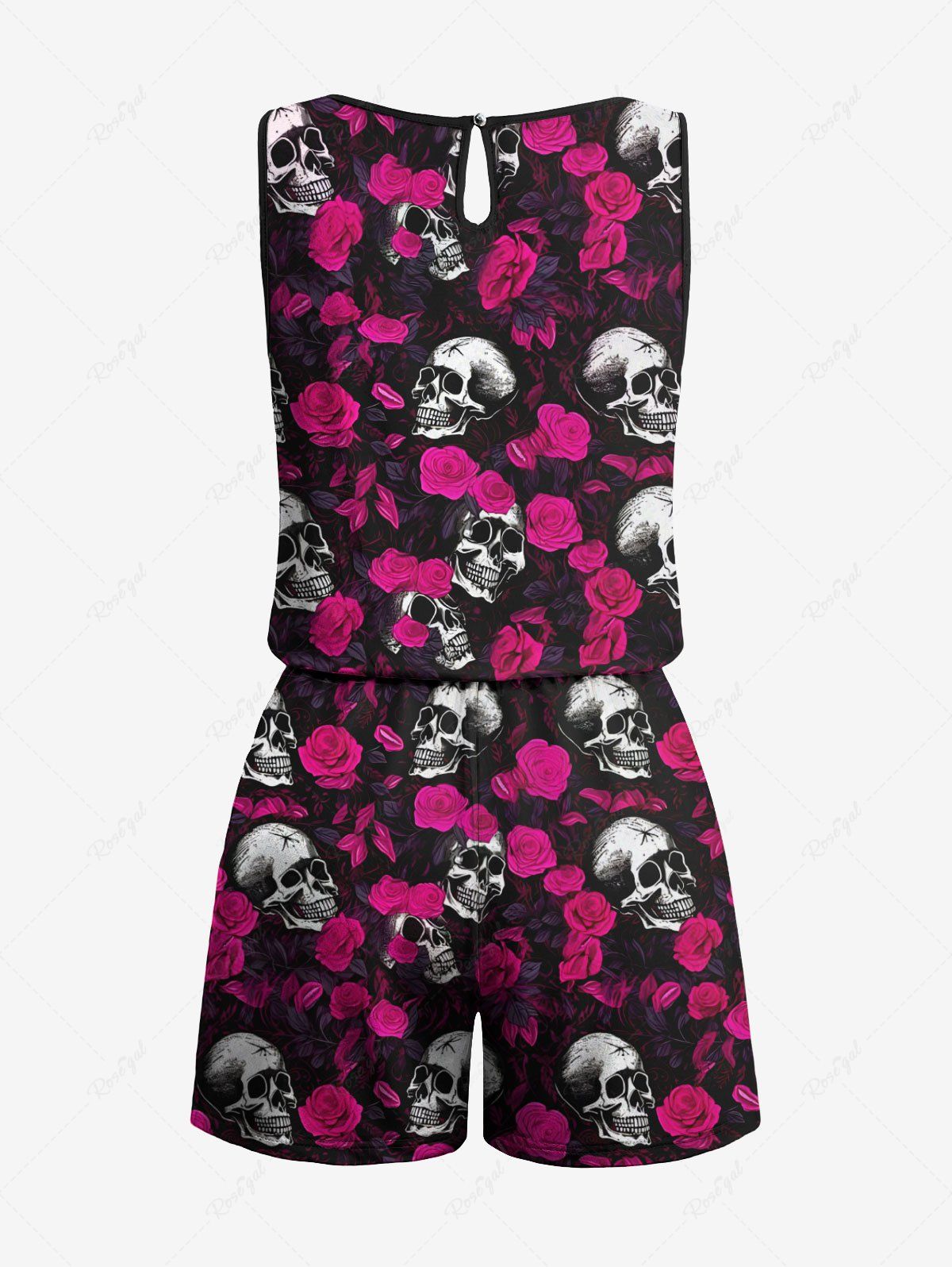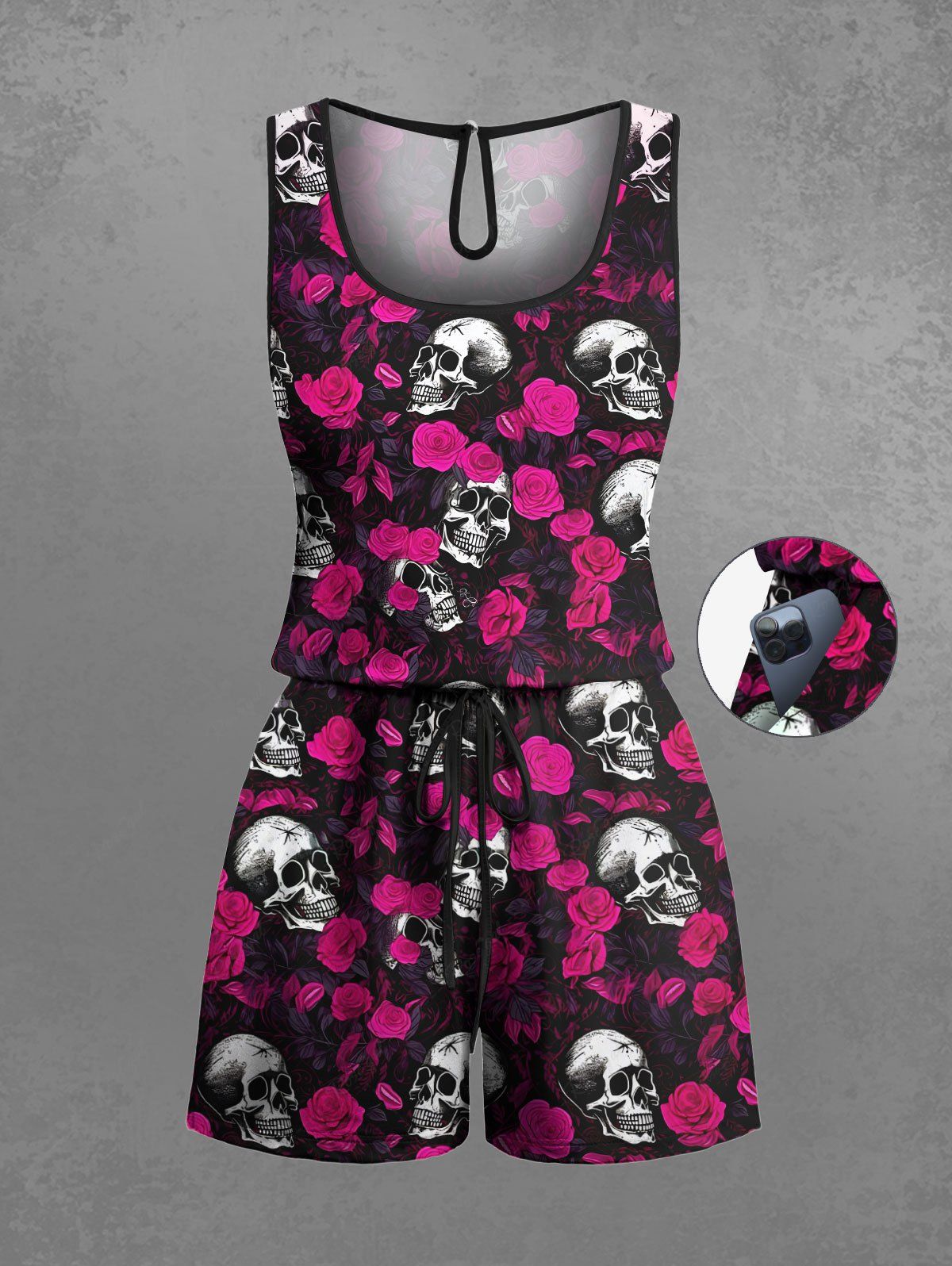 Gothic Plus Size Skull Rose Flower Print Drawstring Pocket Romper