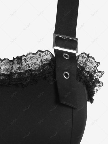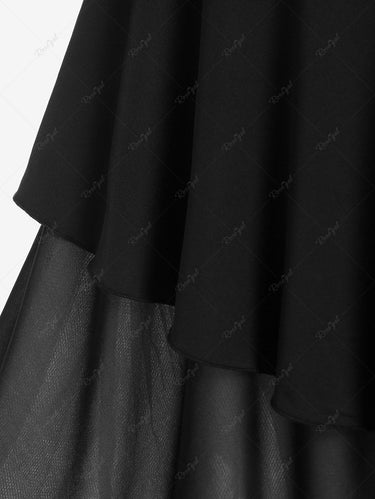 💗Marijana Loves💗 Gothic Plus Size Lace Trim Asymmetric Flounce Sleeveless Gothic Midi Dress