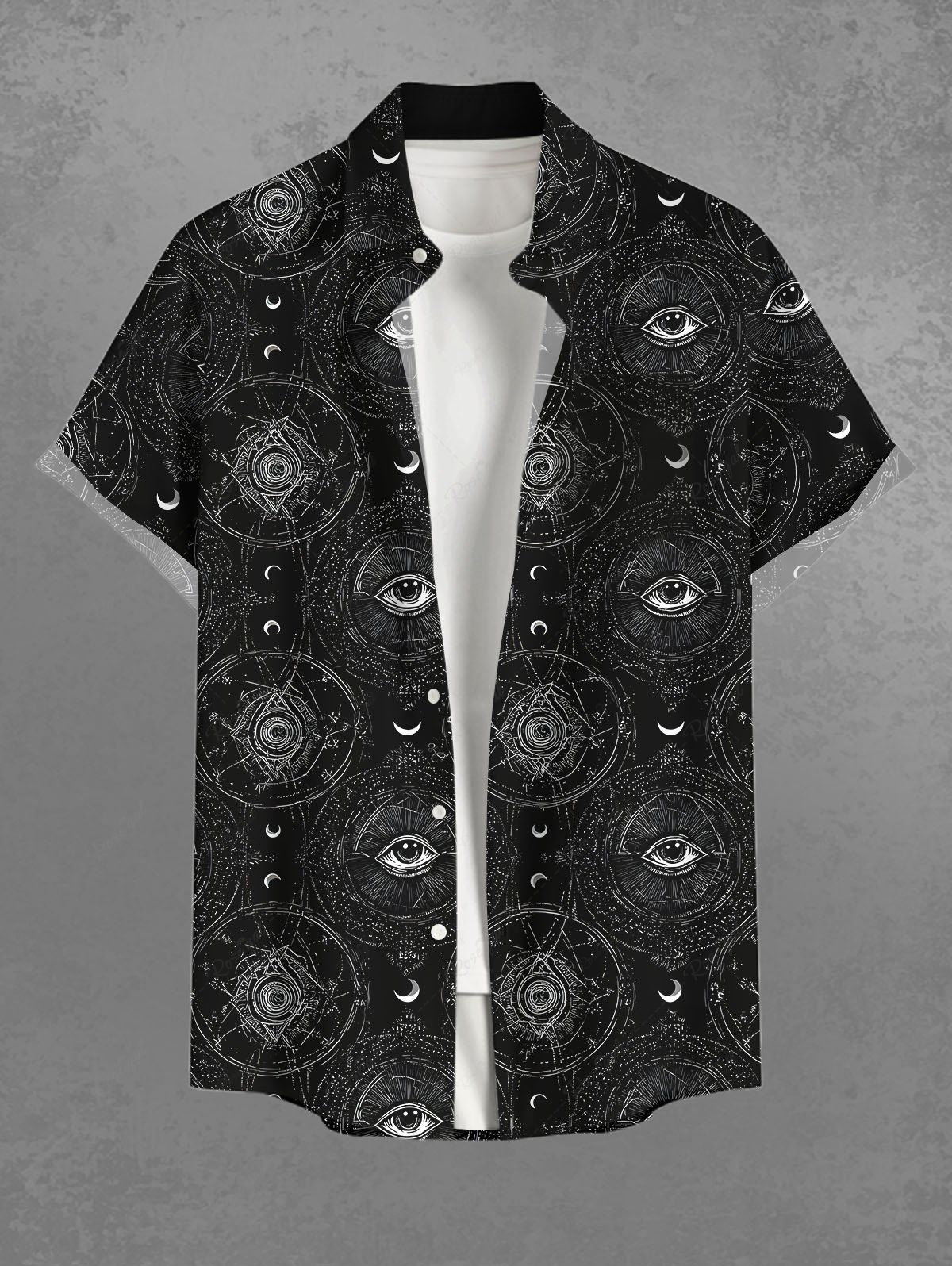 Gothic Plus Size Eye Graphic Print Button Pocket Shirt For Men