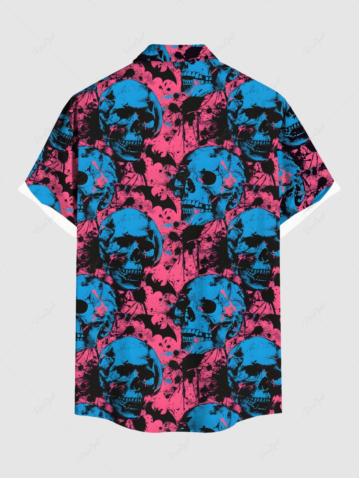 Gothic Plus Size Ink Painting Skull Bat Print Halloween Button Pocket Shirt For Men