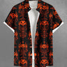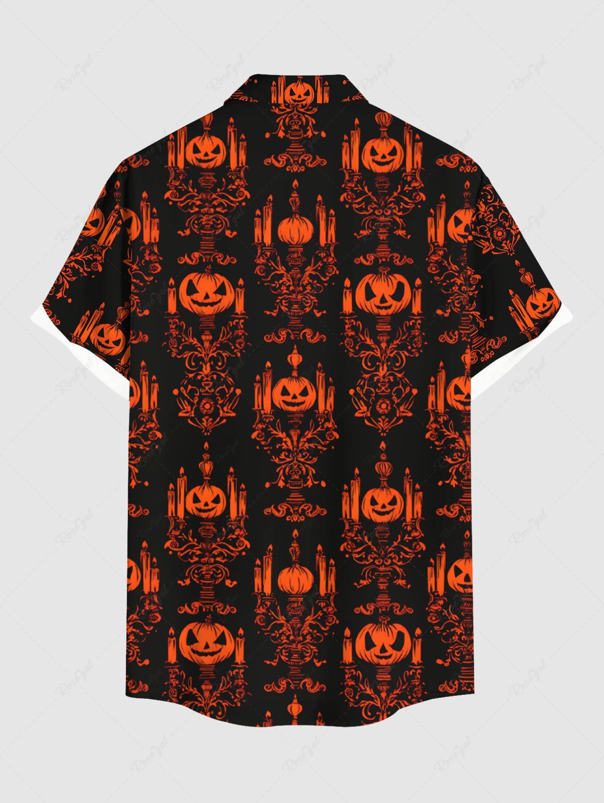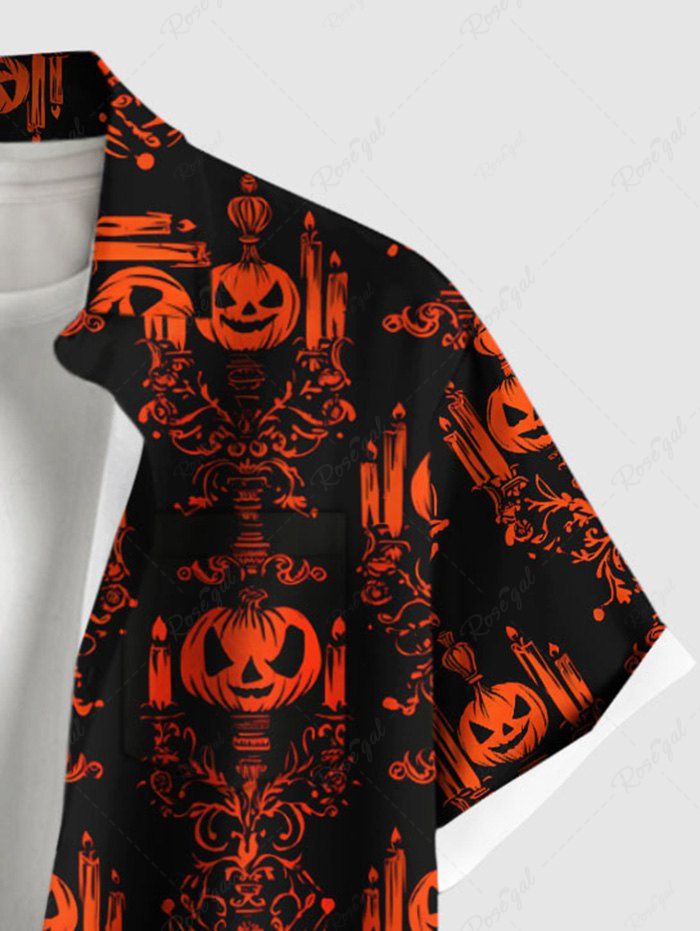Gothic Plus Size Pumpkin Candle Chandelier Print Halloween Button Pocket Shirt For Men