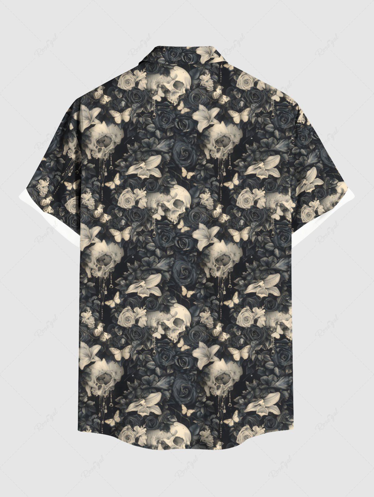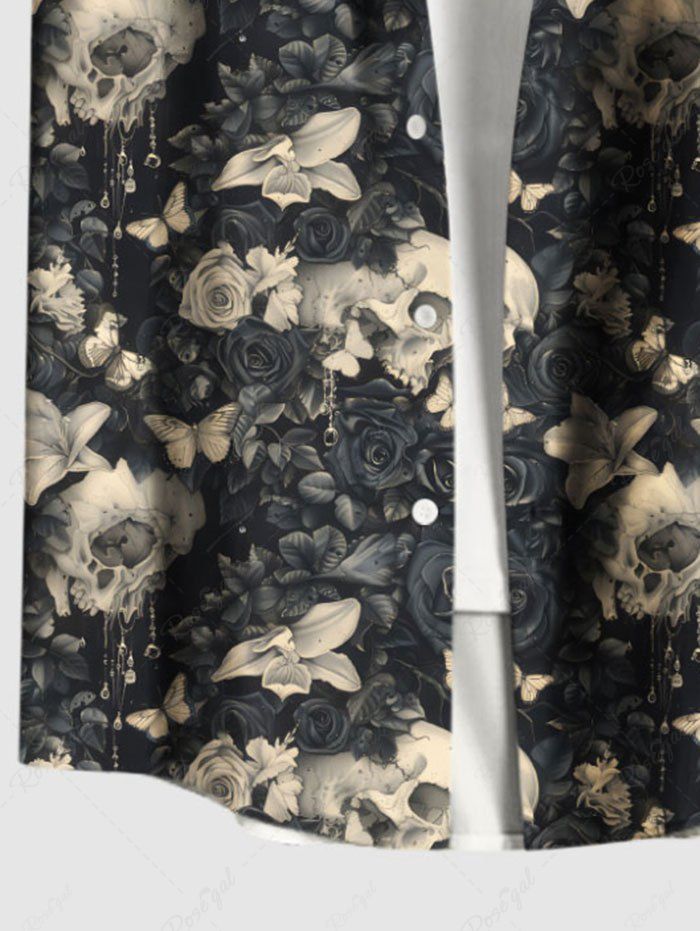 Gothic Plus Size Skull Flower Butterfly Print Button Pocket Shirt For Men