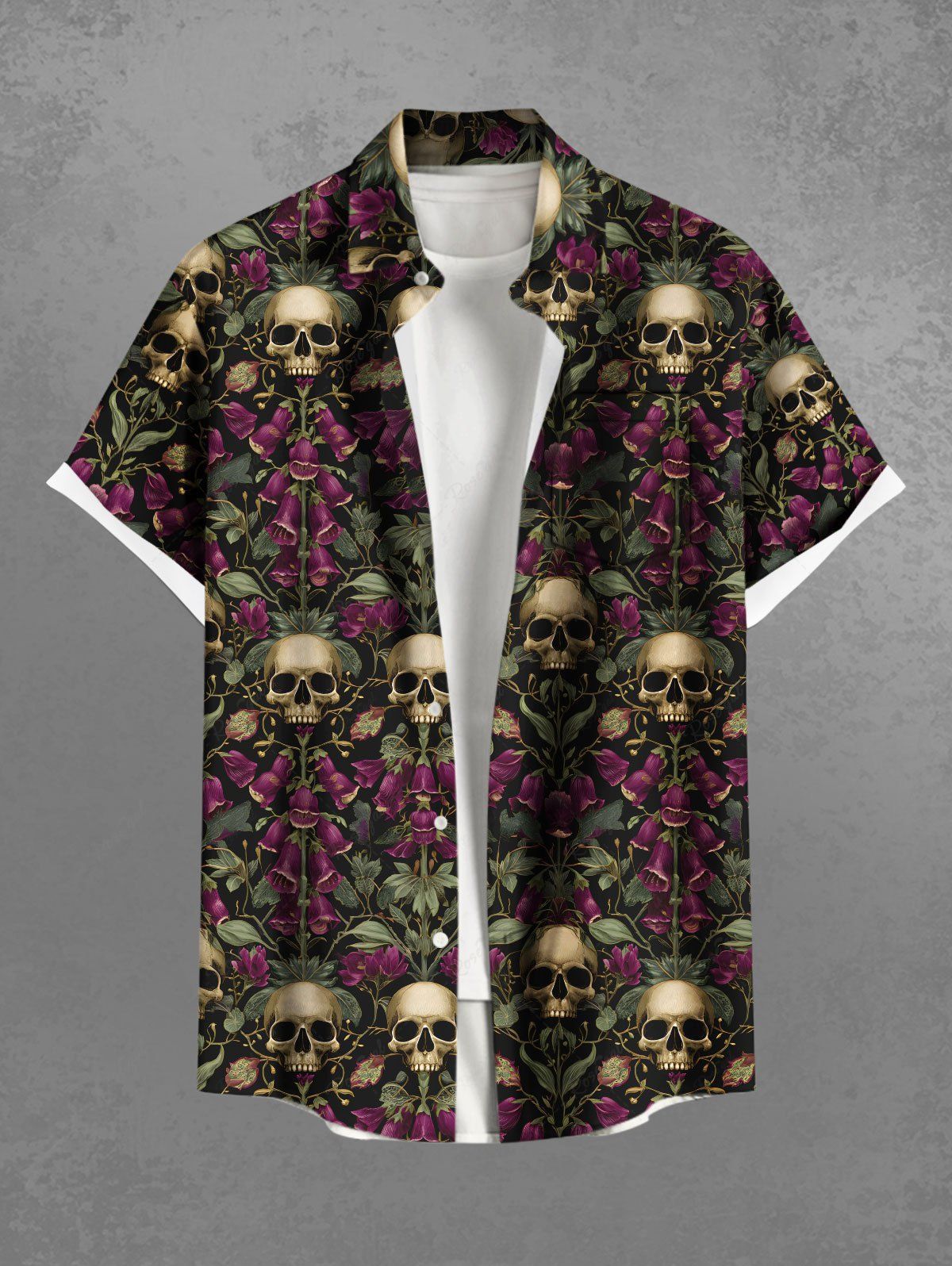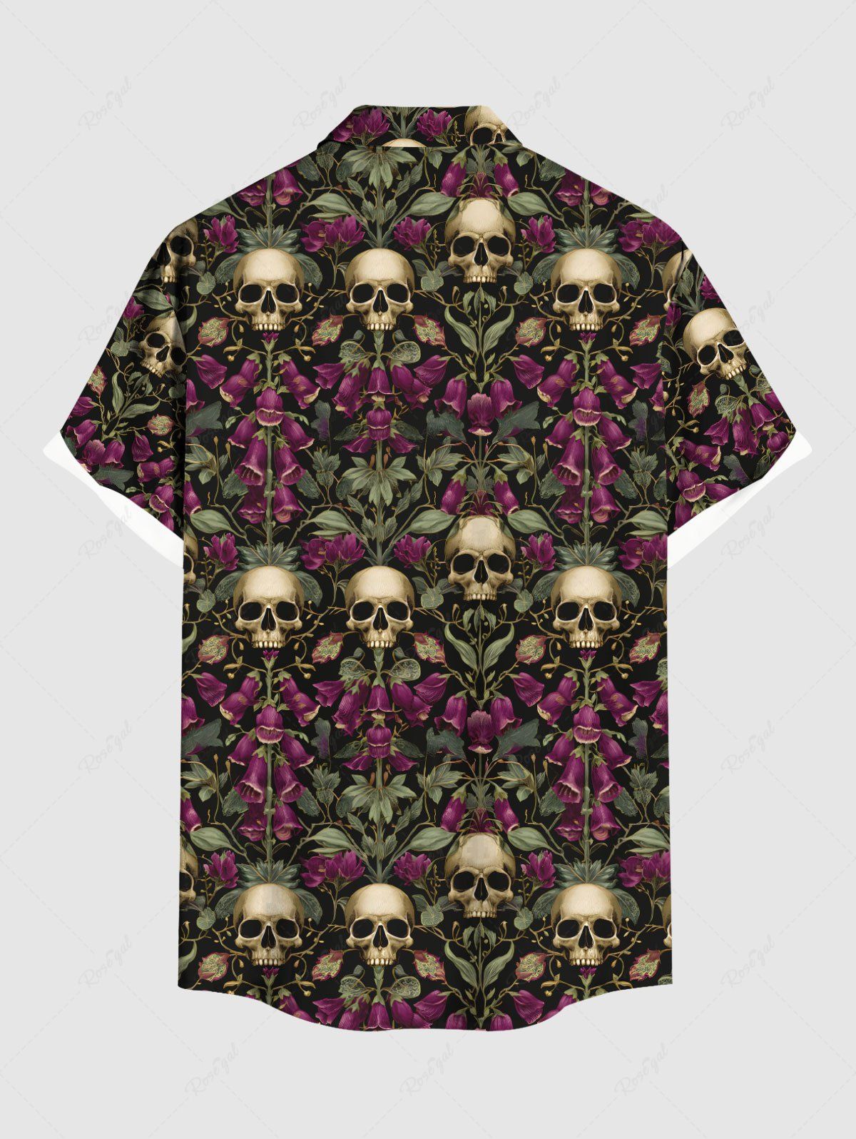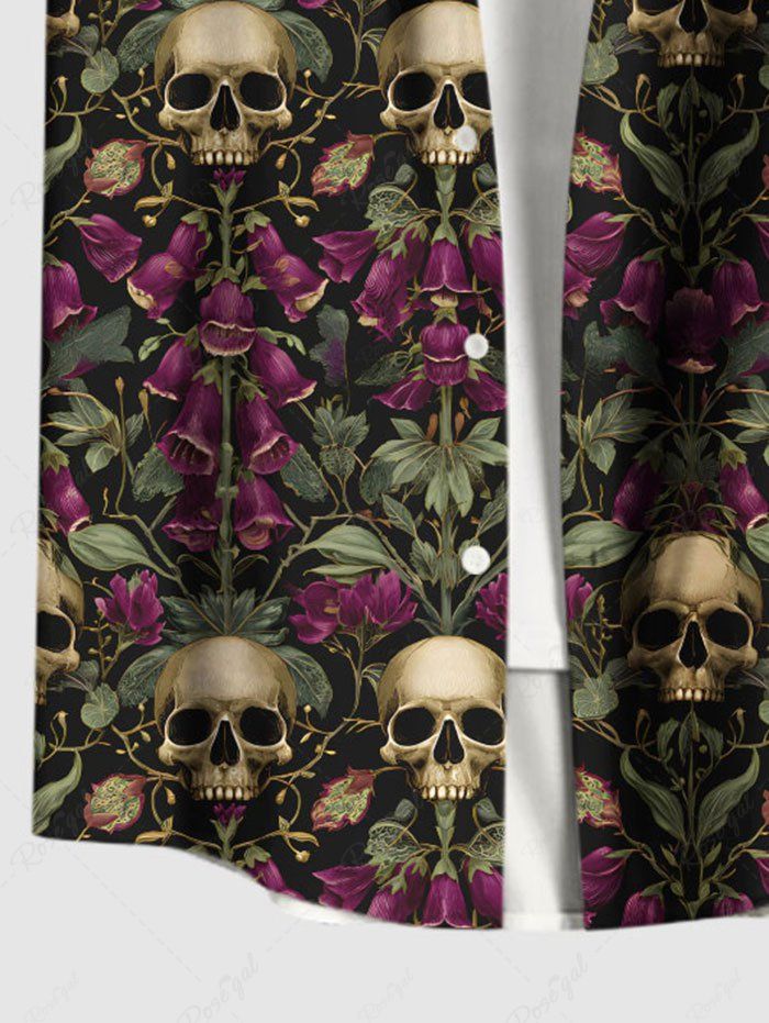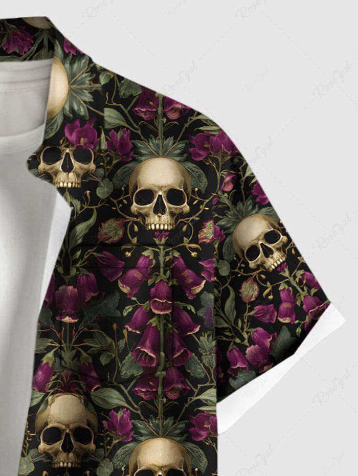 Gothic Plus Size Skull Rose Flower Print Button Pocket Shirt For Men