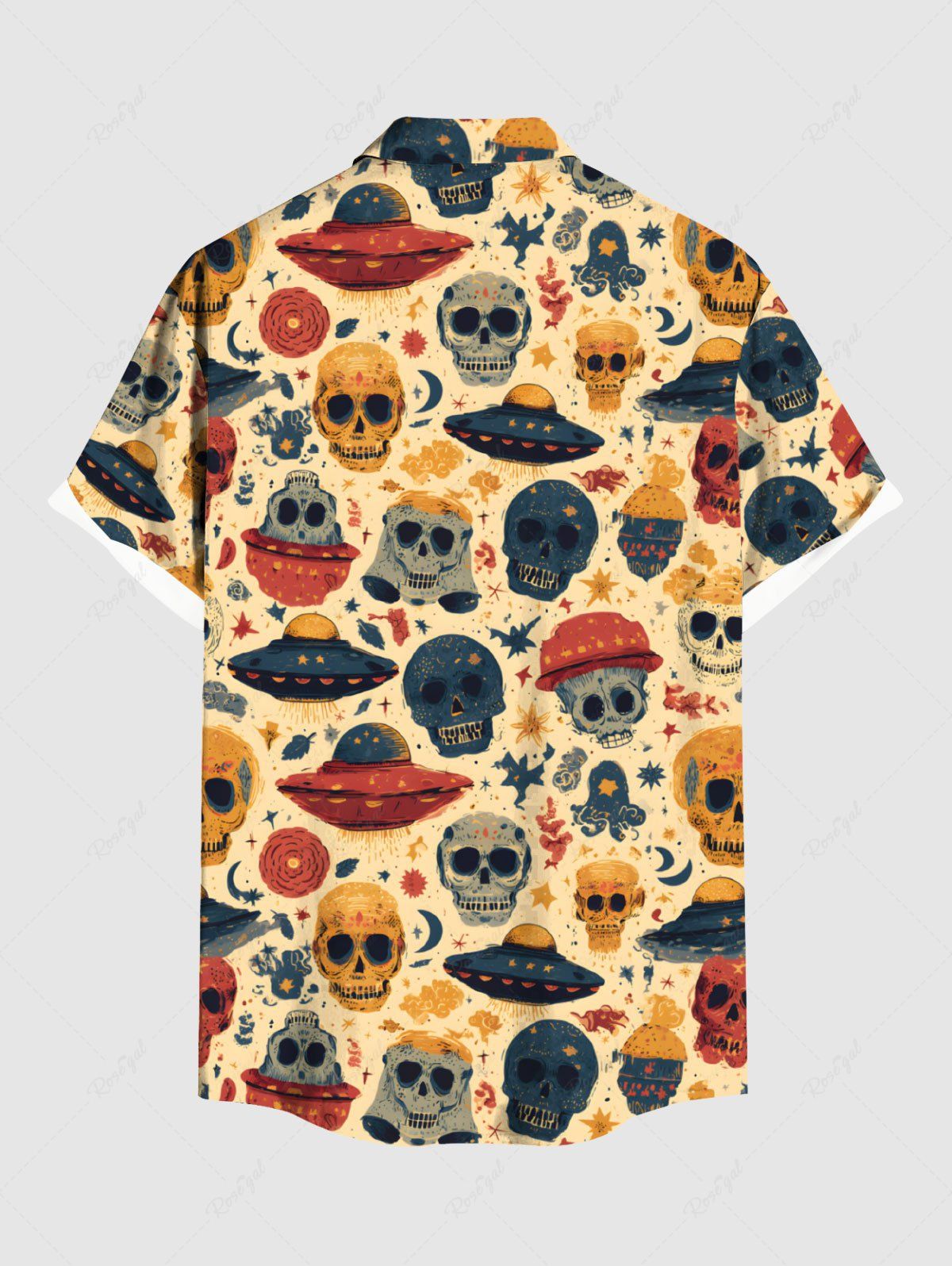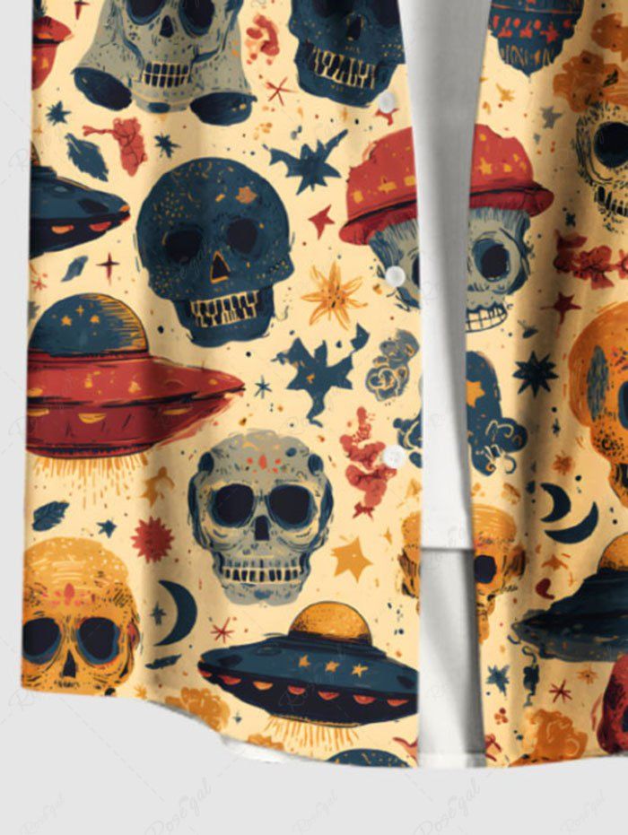 Gothic Plus Size Skull UFO Print Button Pocket Shirt For Men