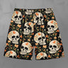 Gothic Plus Size Skull Floral Leaves Print Drawstring Beach Shorts For Men