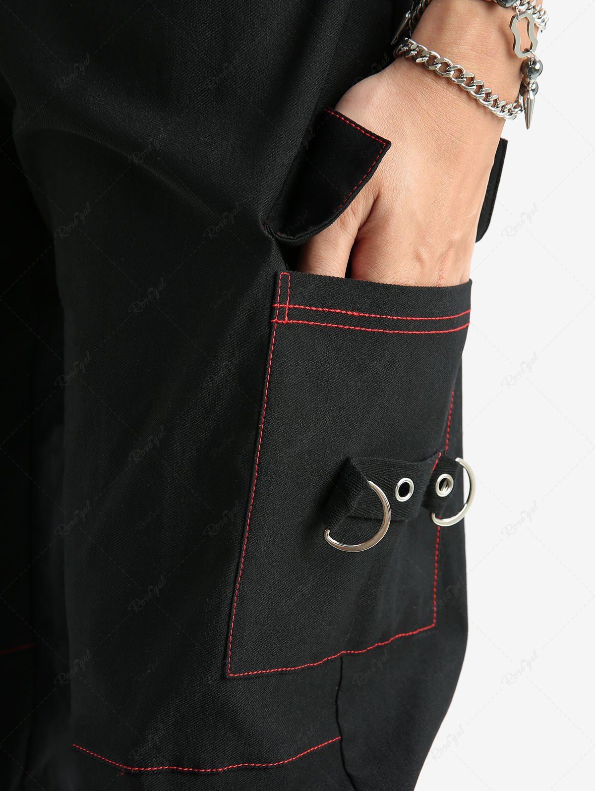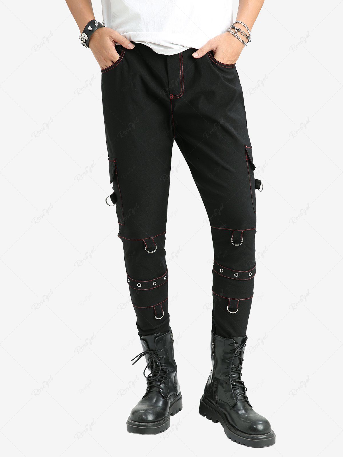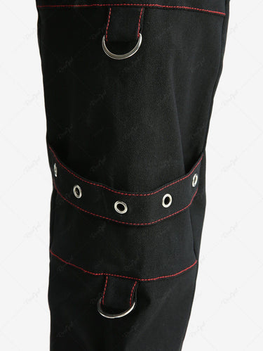 Gothic Topstitching Pockets D-Ring Grommet Pants For Men