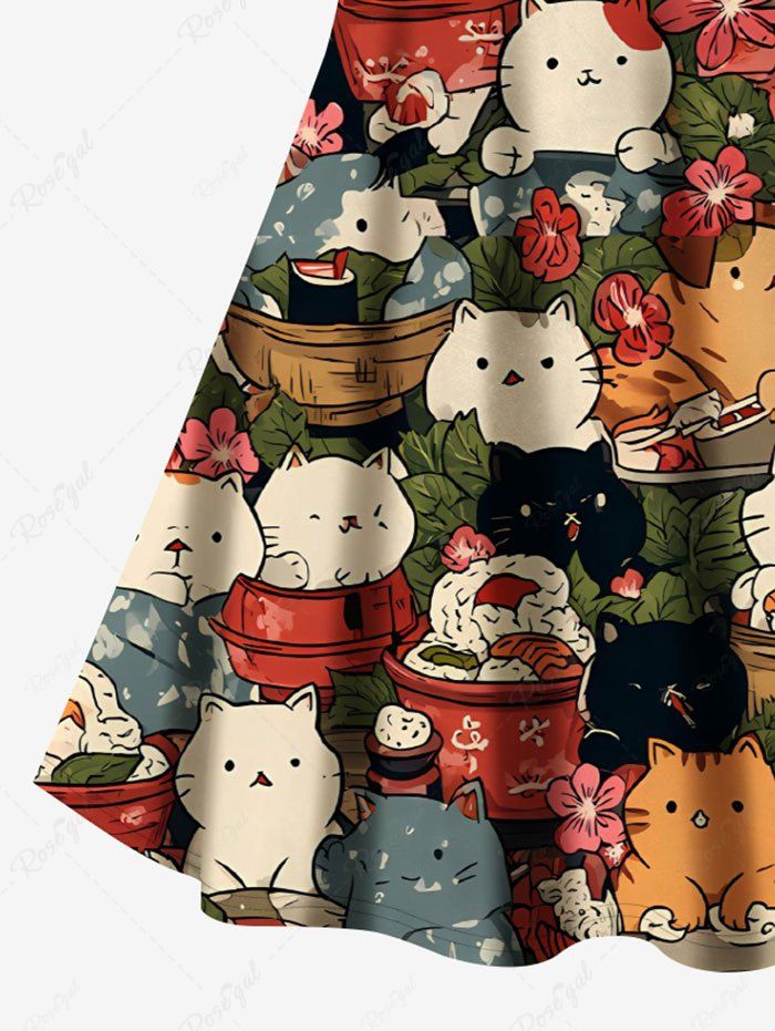 Gothic Plus Size East Asian Style Cute Cat Flower Print Crisscross Strappy A Line Cami Dress