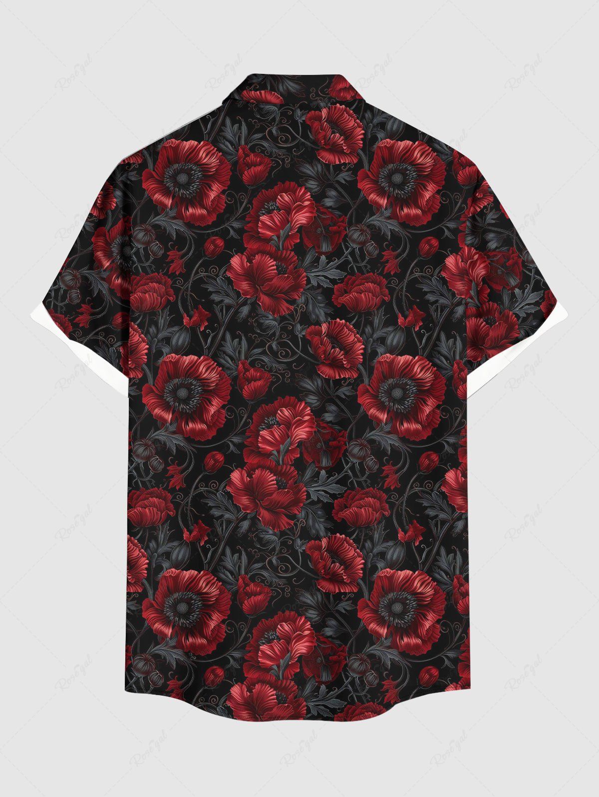Gothic Plus Size Flower Leaf Print Button Pocket Shirt For Men