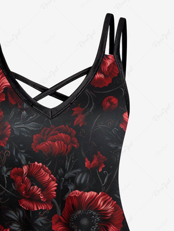 Gothic Plus Size Flower Leaf Print Crisscross Strappy A Line Cami Dress