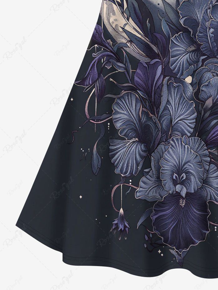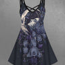Gothic Plus Size Flower Moon Print Crisscross Strappy A Line Cami Dress