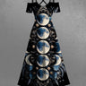 Gothic Plus Size Moon Planet Flower Print Crisscross A Line Maxi Dress