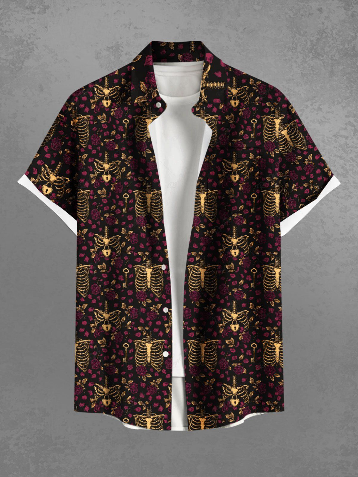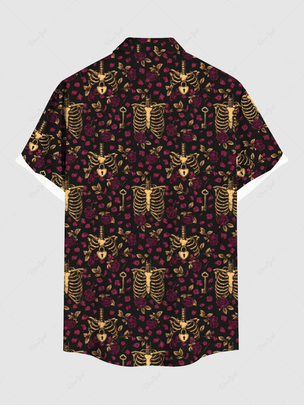 Gothic Plus Size Skeleton Flower Print Button Pocket Shirt For Men