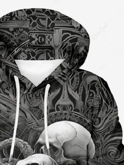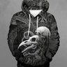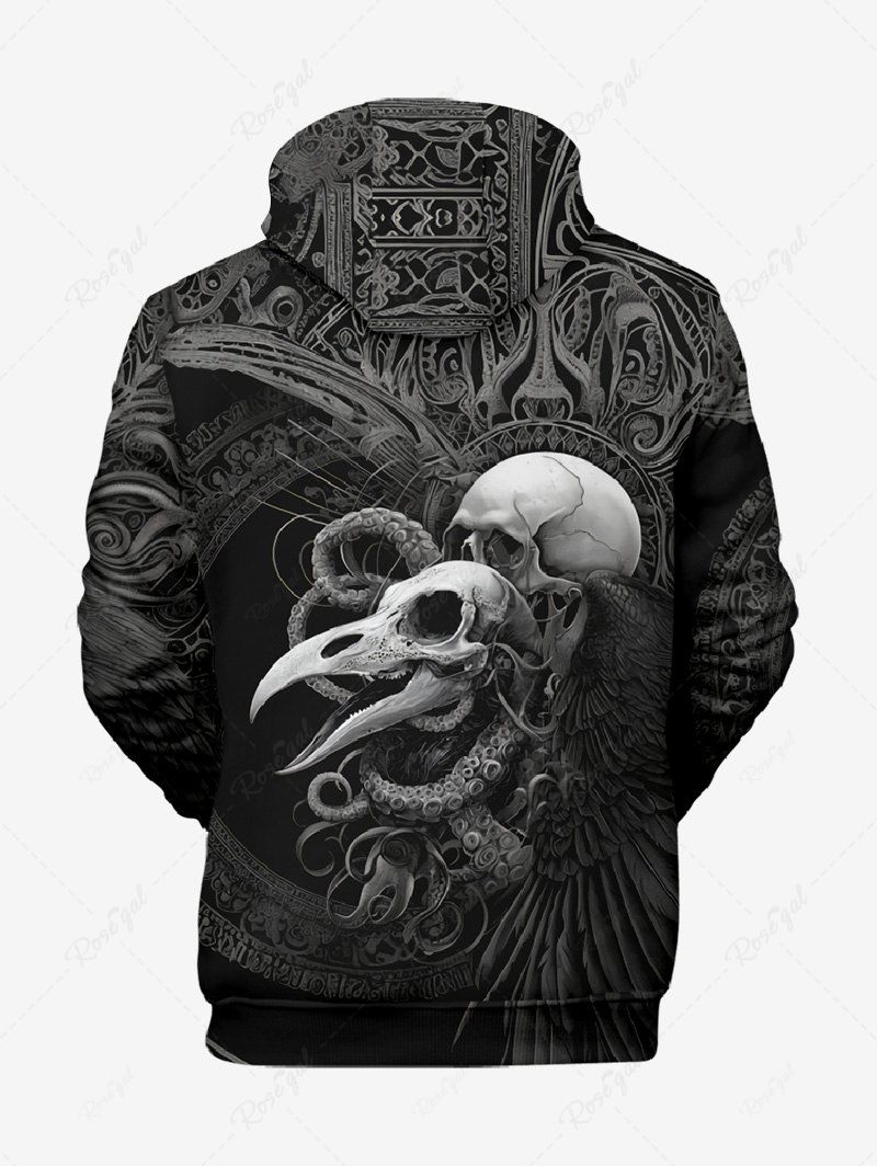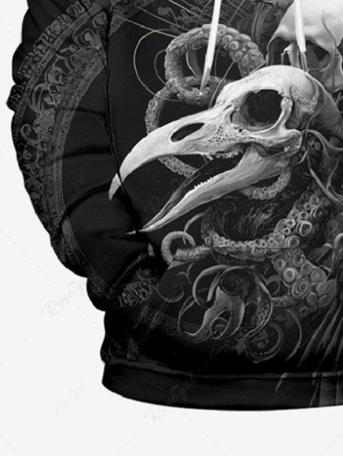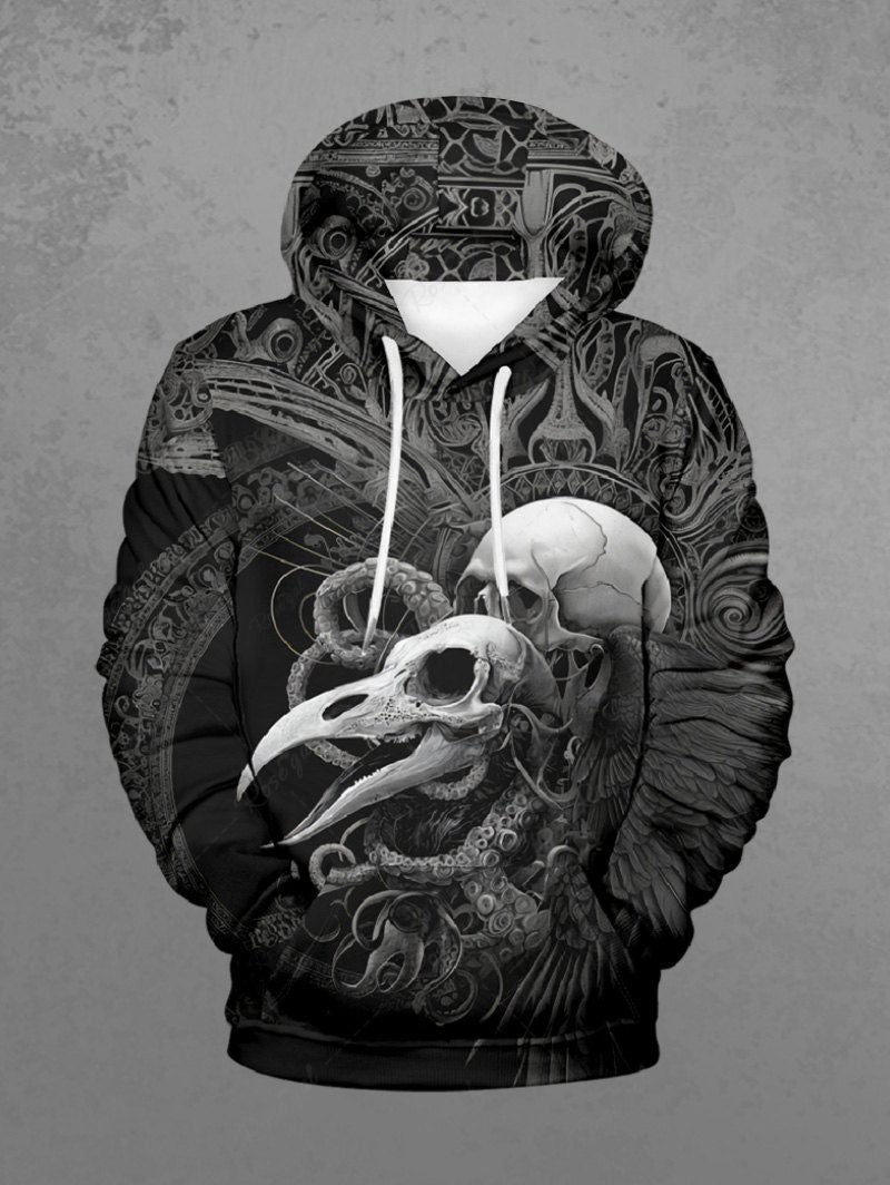 Gothic Plus Size Skull Crow Octopus Print Drawstring Pockets Hoodie For Men