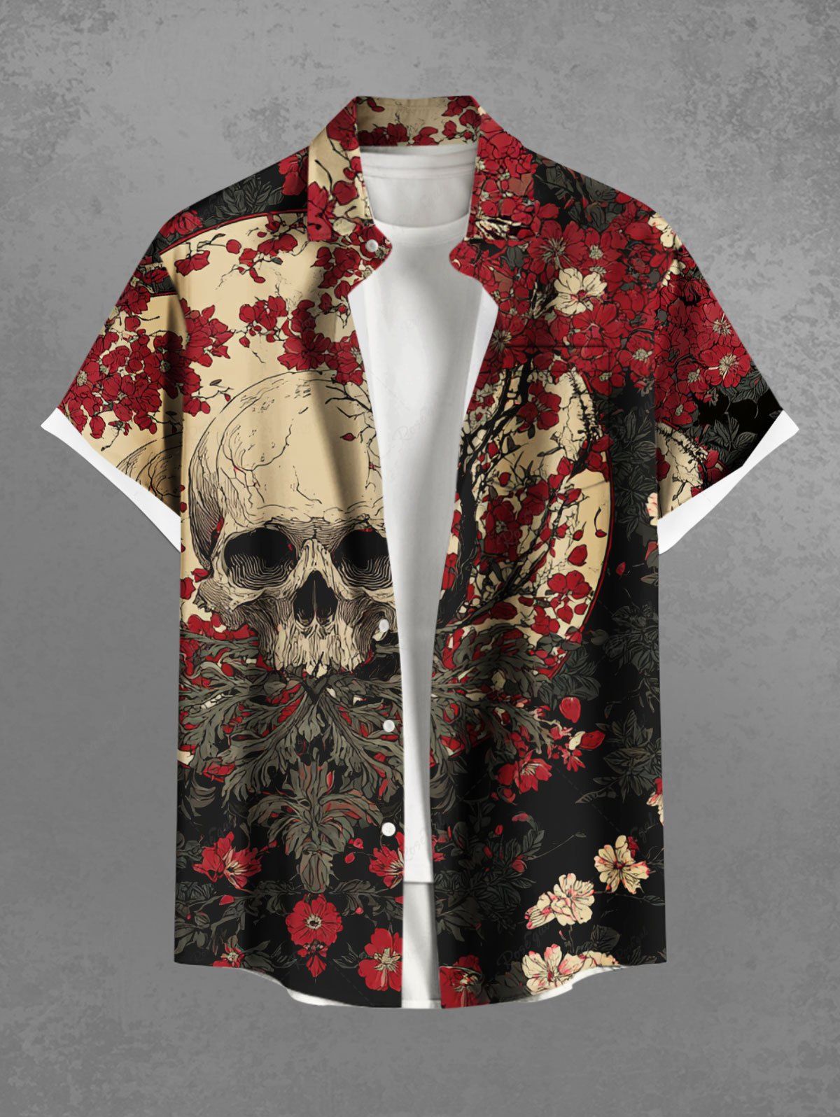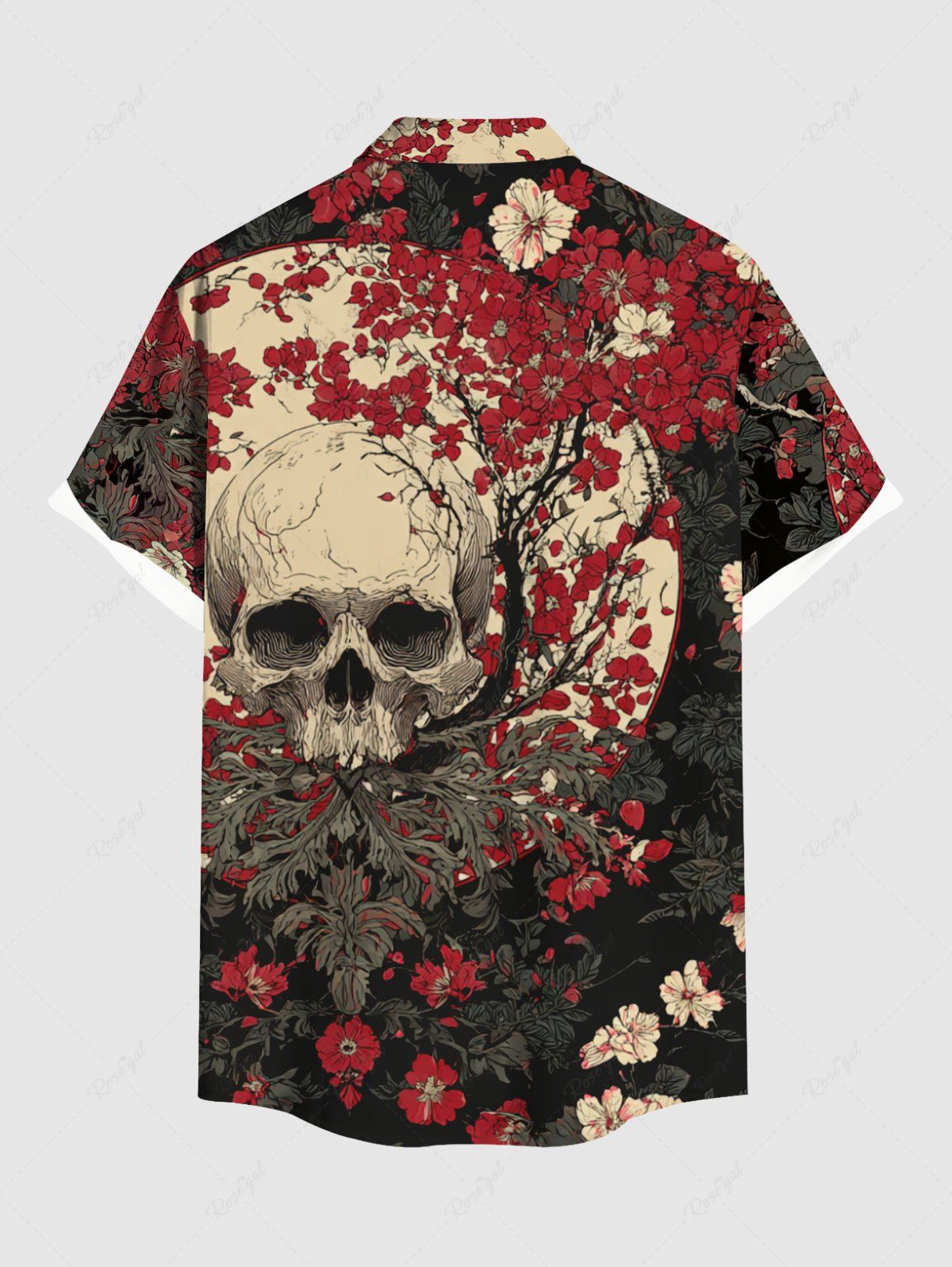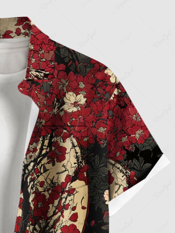 Gothic Plus Size Skull Flower Branch Moon Print Button Pocket Shirt For Men