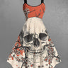 Gothic Plus Size Skull Flower Branch Print A Line Dress