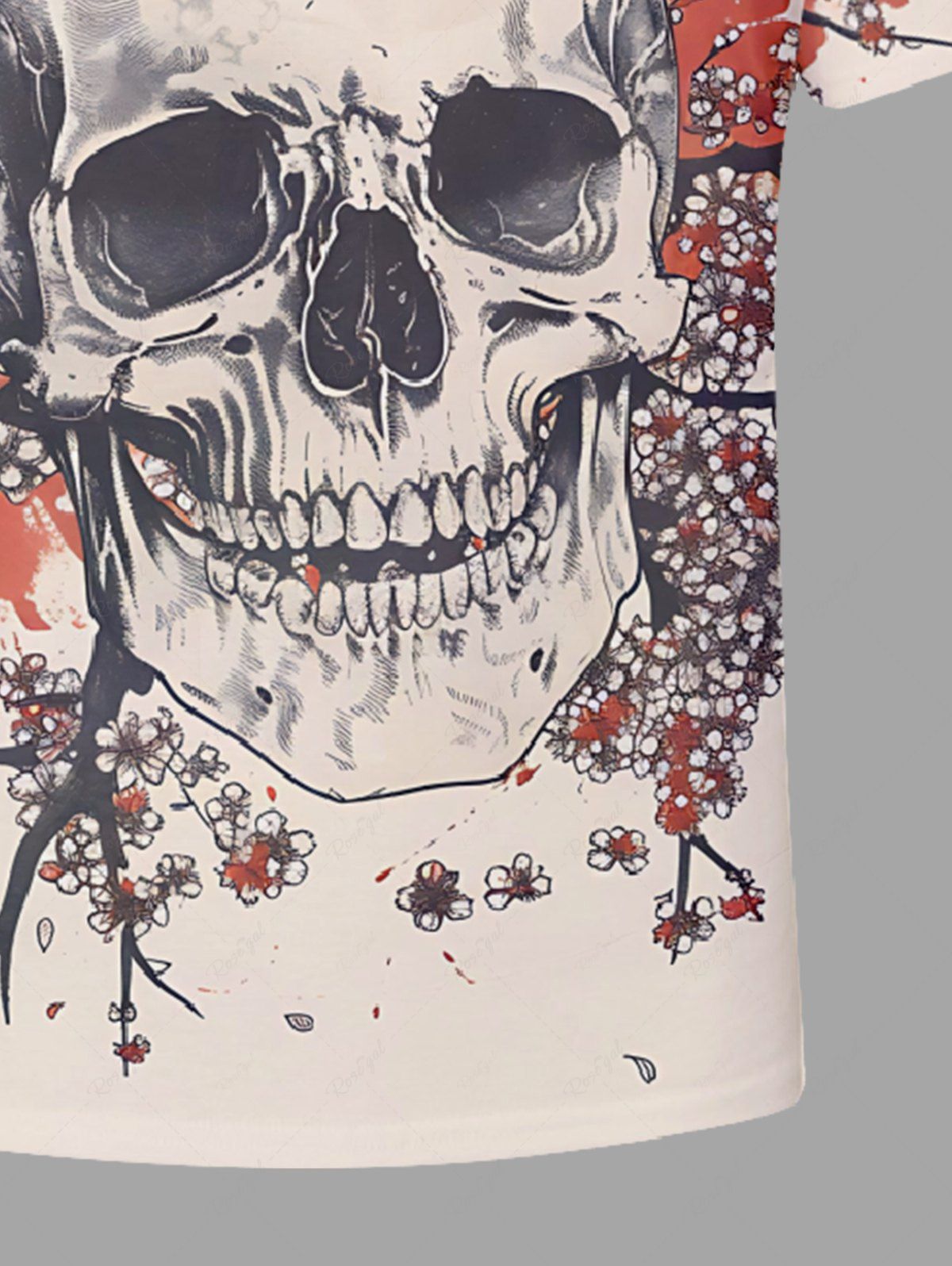 Gothic Plus Size Skull Flower Branch Print T-shirt For Men