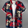 Gothic Plus Size Skull Flower Fan Print Button Pocket Shirt For Men
