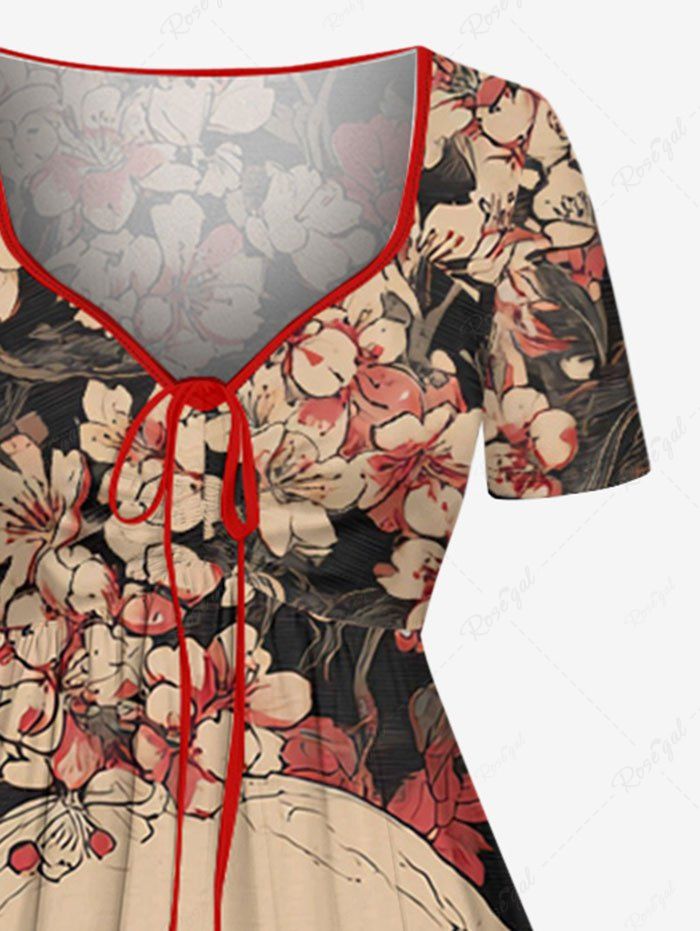 Gothic Plus Size Skull Flower Leaf Print Cinched A Line Dress
