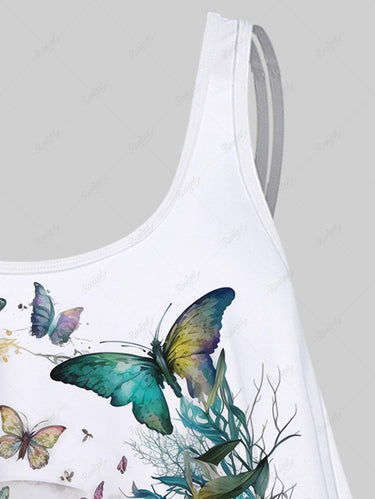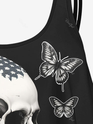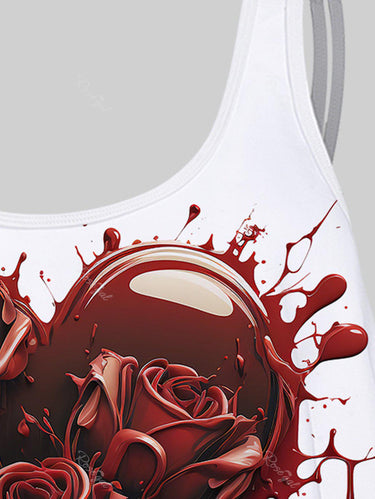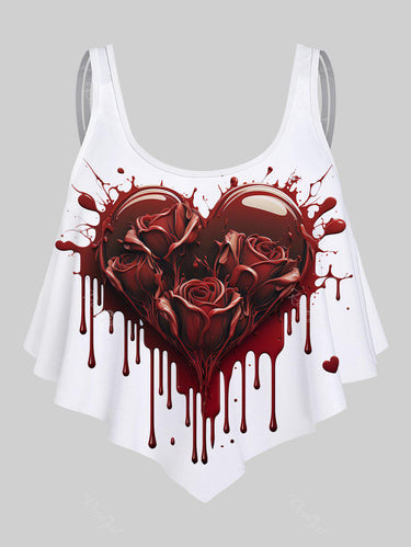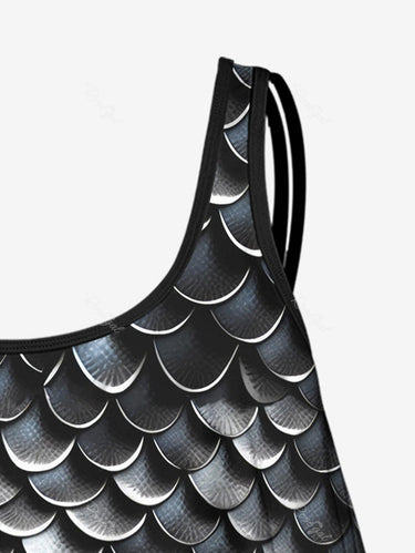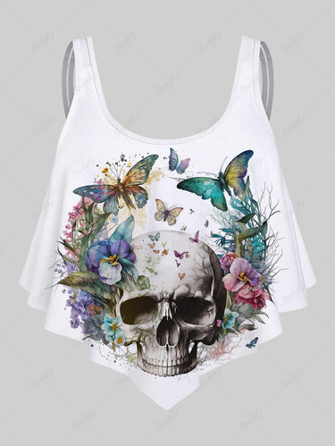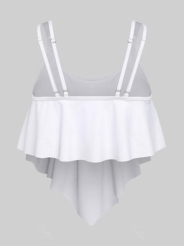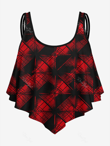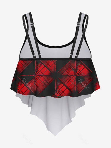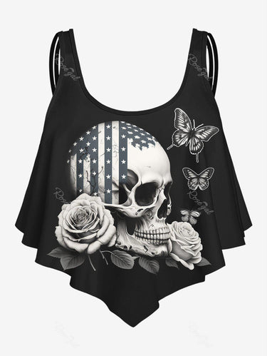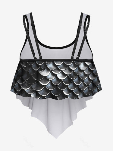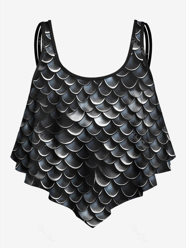💗Coralie Loves💗 Gothic Plus Size 3D Print Flounce Tankini Top(Adjustable Shoulder Strap)