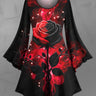 Gothic Plus Size Glitter Christmas Light Rose Flower Print A Line Dress