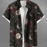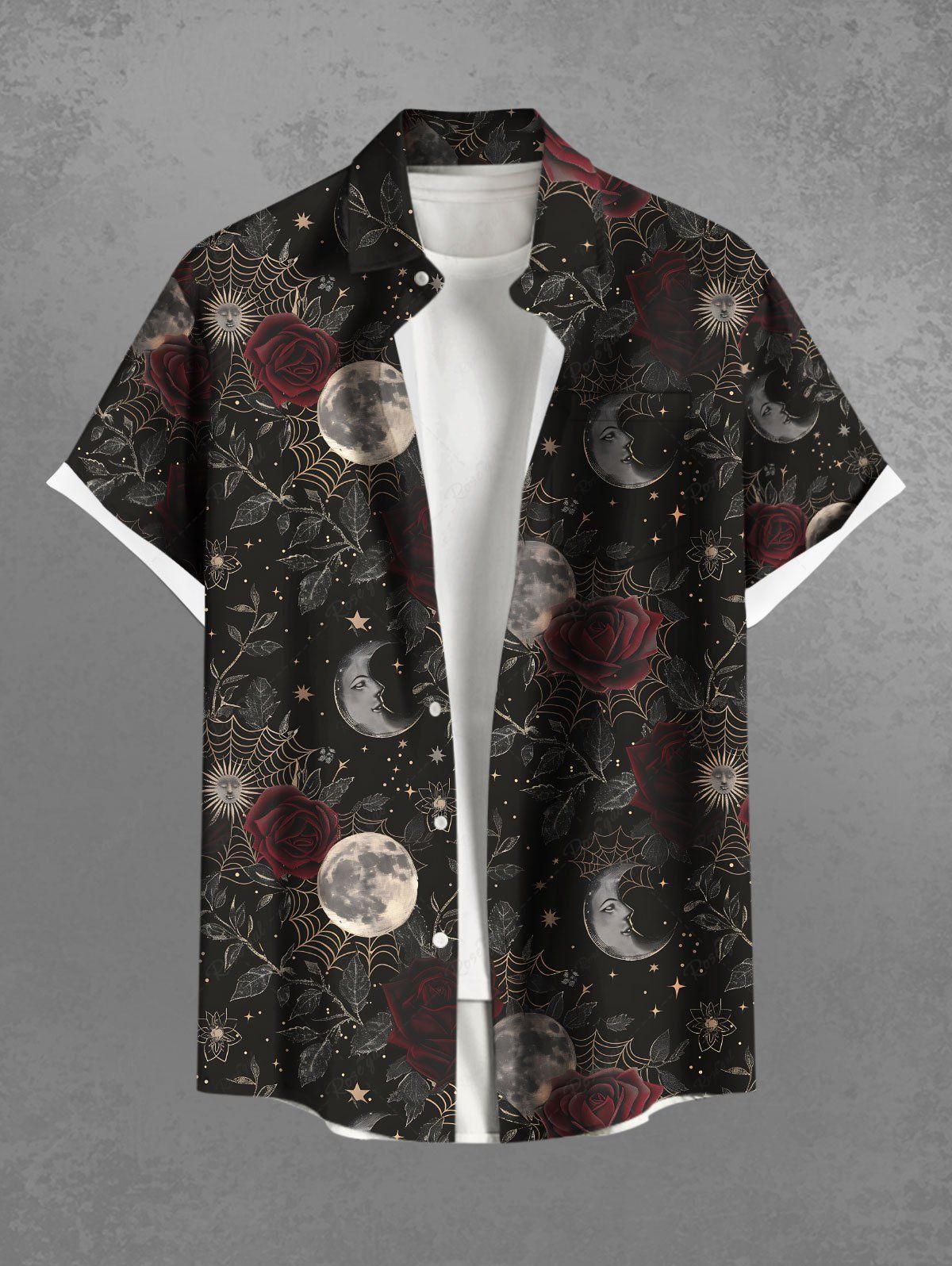 Gothic Plus Size Moon Spider Web Rose Flower Print Button Pocket Shirt For Men