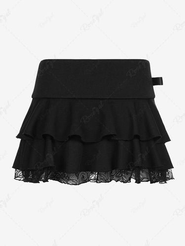 Gothic Bowknot Lace Patchwork Layered A Line Mini Skirt
