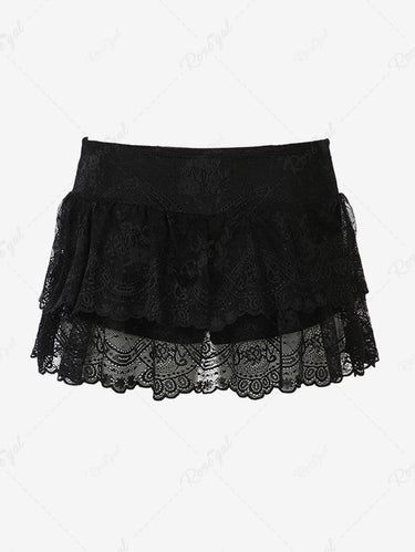 Gothic Floral Lace Sheer Layered A Line Mini Skirt